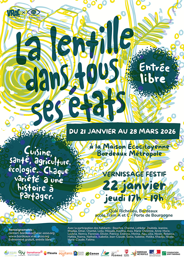 Le 22 janvier Domofrance a participé aux côtés de MÉSOLIA, Aquitanis, Gironde Habitat et le GPV Rive Droite au vernissage d’une exposition dédiée à la lentille, l’une des légumineuses mises à l’honneur en 2025 par les habitants de la Rive Droite au travers d’ateliers de cuisine.